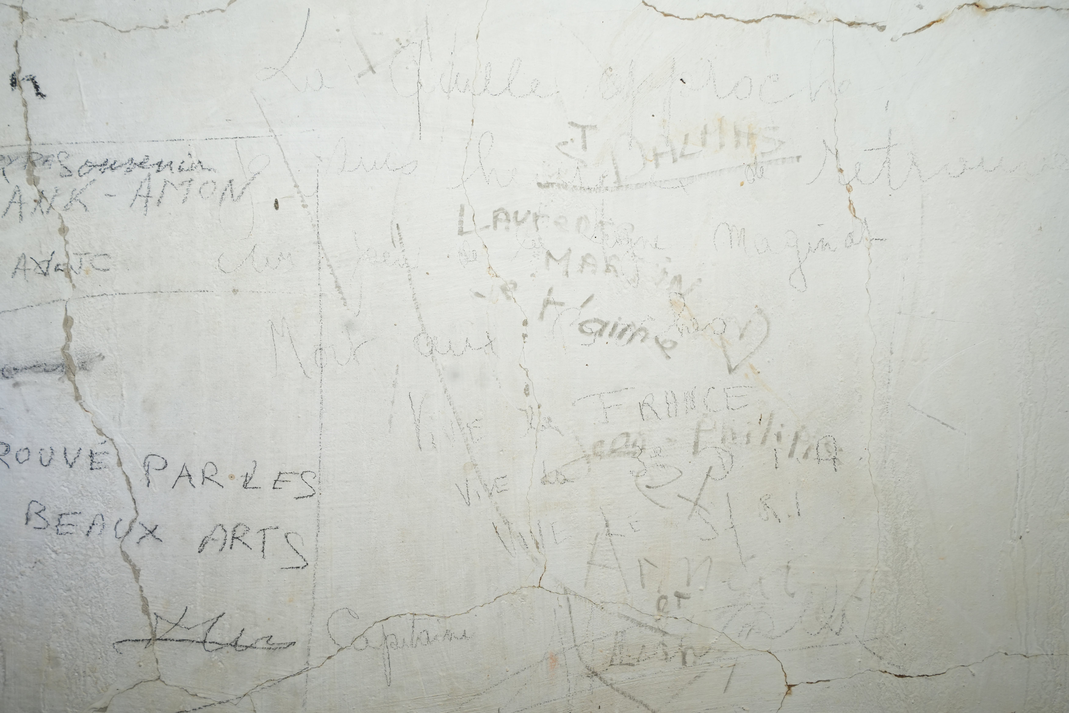 J'avoue ne pas trop savoir de quand elle date mais on arrive a déchiffrer un témoignage assez intéressant. J'ai réussi à déchiffrer cela (malheureusement d'autres graffitis y ont été ajoutés par dessus...) :