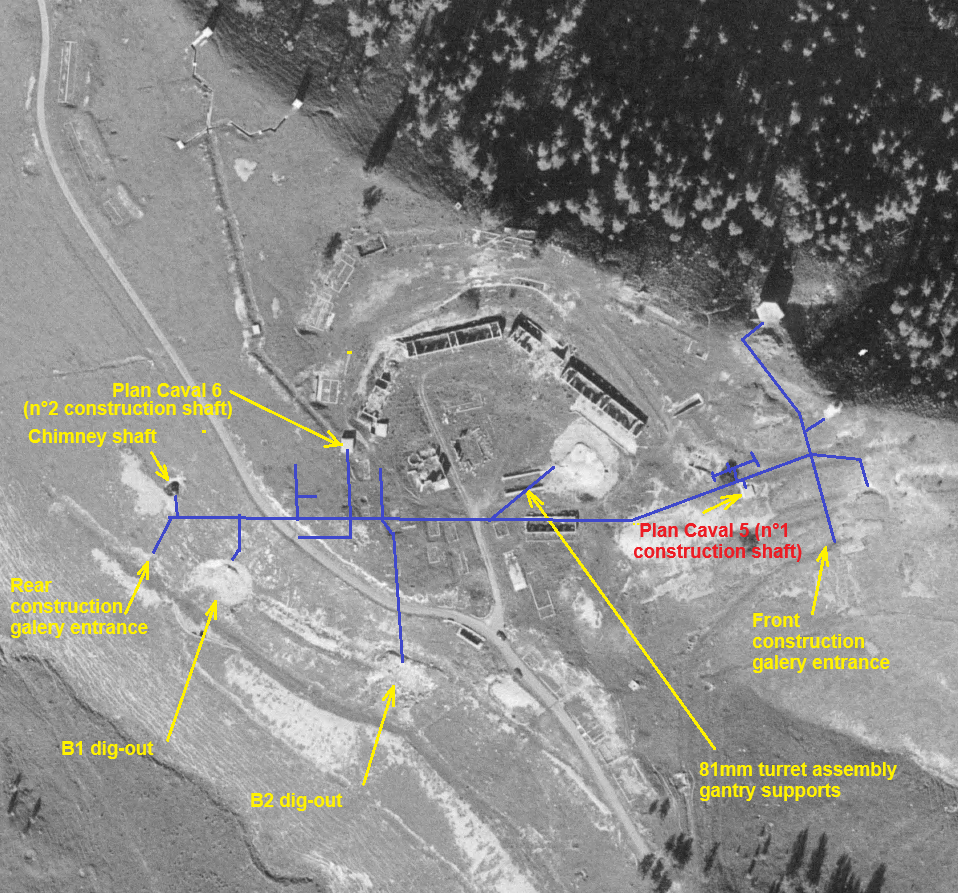 Not to my knowledge. Il fact the location of the Plan Caval 6 (and the corresponding construction shaft of the ouvrage) is very precisely known through the design of the underground barracks, drawing of underground work status evaluated in 1957 and the construction map included in the 05/1940 "Plan de mise en état de défense du chantier de Plan Caval" document.