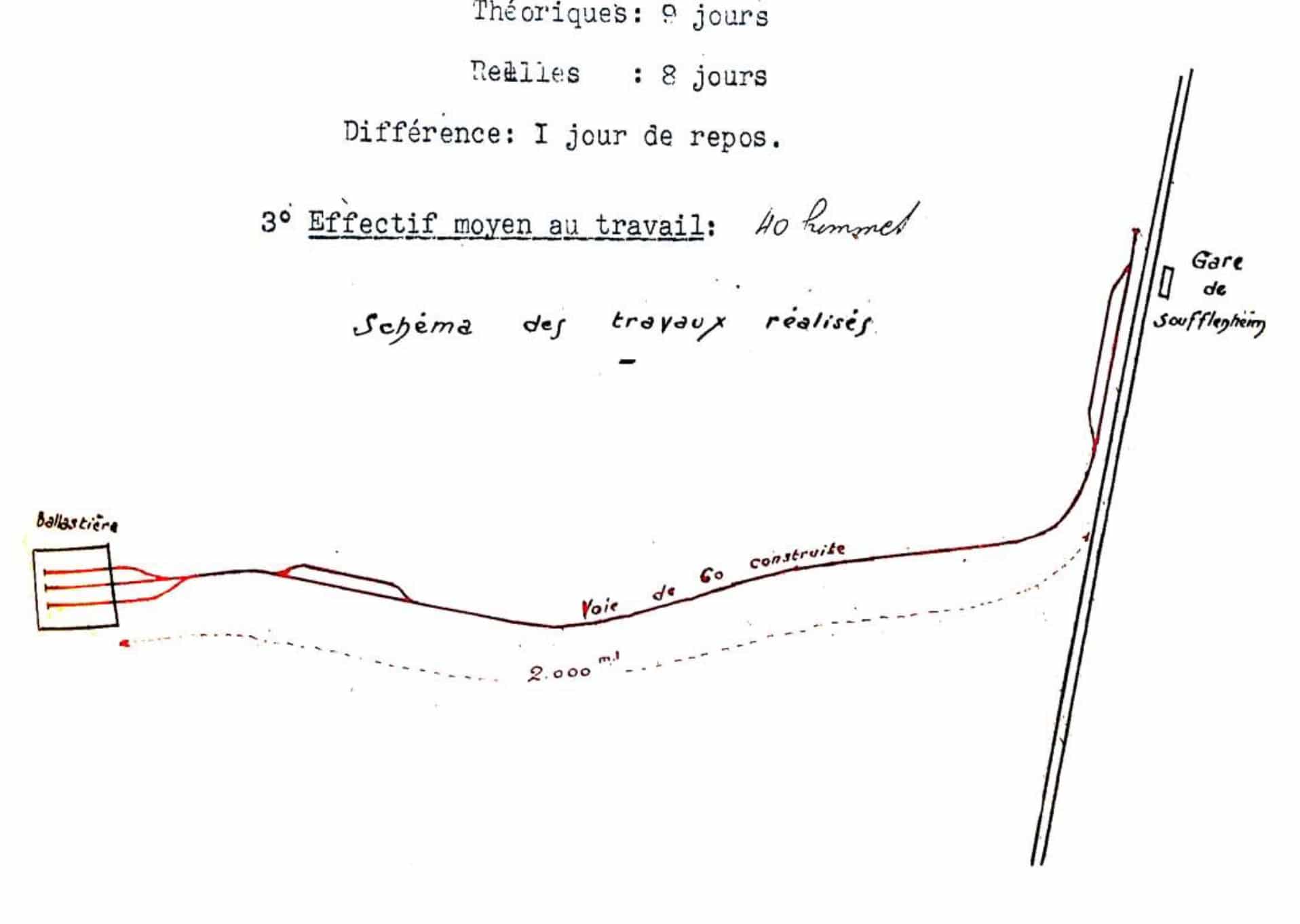 Un tronçon de voie de 60 (2 000 ml...) a été posé en 1939 entre la gare de Soufflenheim et la ballastière de Soufflenheim.