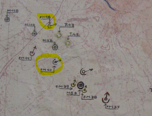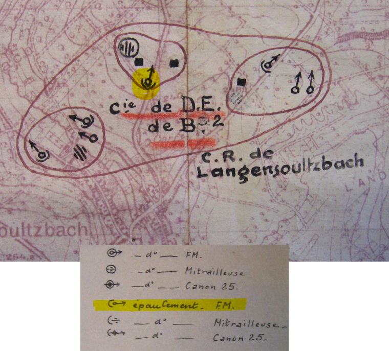 Troisième élément qui jette le doute sur une destination "37 TR 16" de cette construction : malheureusement, Spiess 2 est hors d'une carte qui est à la limite à Langensoultzbach, mais qui nomme les blocs en fonction de leur usage. Sur cette carte, Breittuer 4 et 5 - identiques dans la forme à Speiss 2 - sont mentionnés comme "FM44" et "FM40"...