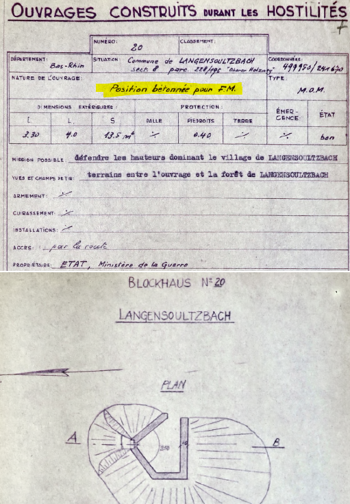 Enfin, dernier élément contredisant ce que dit ton collègue : le répertoire SCOICH du Bas Rhin... Cette construction a proprement été recensée et mesurée par la SCOICH et est répertoriée comme "Langensoultbach 20"... et elle est décrite comme "emplacement bétonné pour FM".