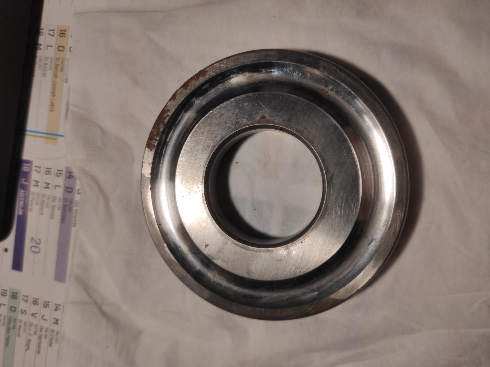 Les deux pièces ont leur diamètre extérieur (le plus grand) d'environ 940 mm et un diamètre intérieur (le plus petit donc, situé sur le centre de la pièce) d'environ 440 mm.