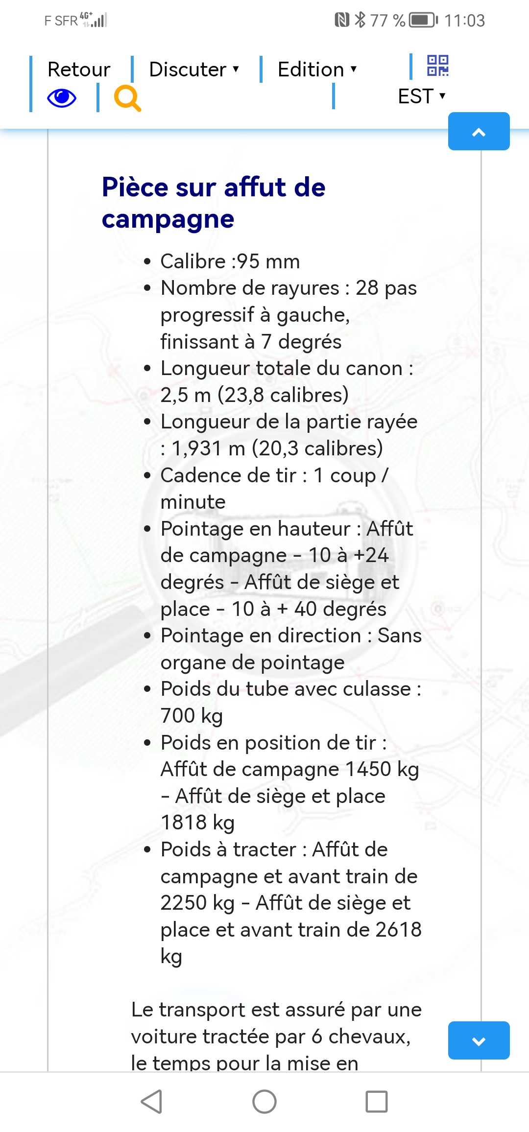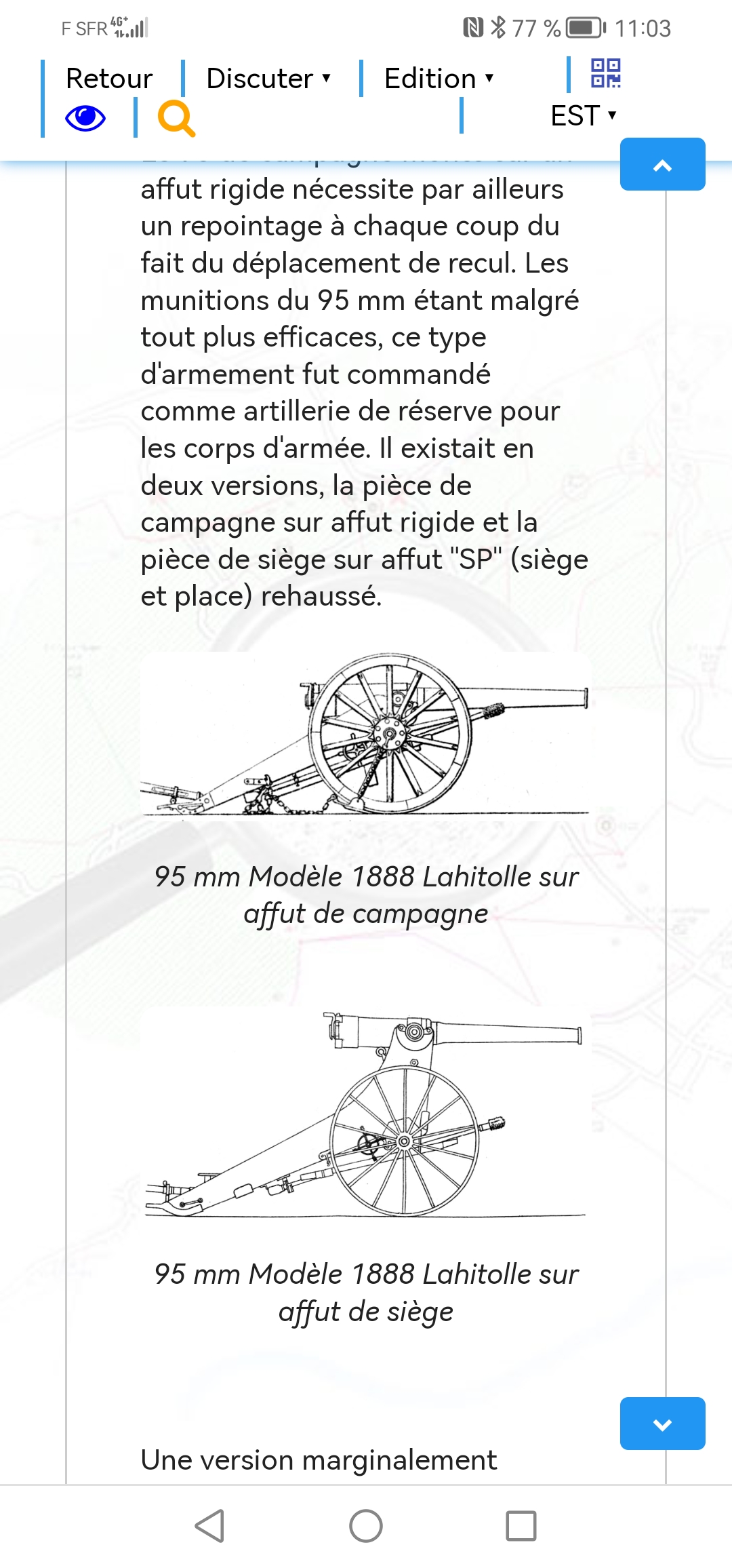 En PJ deux impressions écran de la dit page dico. Un illustration et les données techniques. De plus de mémoire dans les écrites d'Alain H se trouve une photo du 95mm sur affût de place où siège.