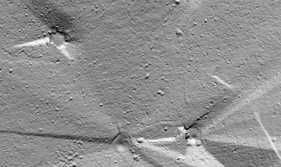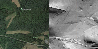 Pour ton info, et dans le cadre de cette recherche de perfection, nous nous sommes dotés d'un outil (quasi) miraculeux qui nous permet comme par magie d'effacer toutes canopées, broussailles et autres feuillages du terrain naturel et des photos aériennes : l'analyse des données de la campagne nationale de cartographie par LIDAR de l'IGN. Un petite exemple ci-dessous du caractère spectaculaire de la chose, appliquée à l'ouvrage du Schiesseck qui est justement parfaitement noyé sous la canopée. Avec le bon réglage de traitement des données tu peux voir le moindre trou dans le sol sous les arbres ! Ceci devrait nous aider à trouver quelques T.D.P.M. (ou bloc tourelle FT) perdues ici ou là, qui sait. La localisation du point suspect étant donné par ce moyen à la dizaine de centimètres prés, cela permettra aux intéressés de mesurer sur site le diamètre de l'orifice sans passer deux heures à tourner dans les fourrés ;-)