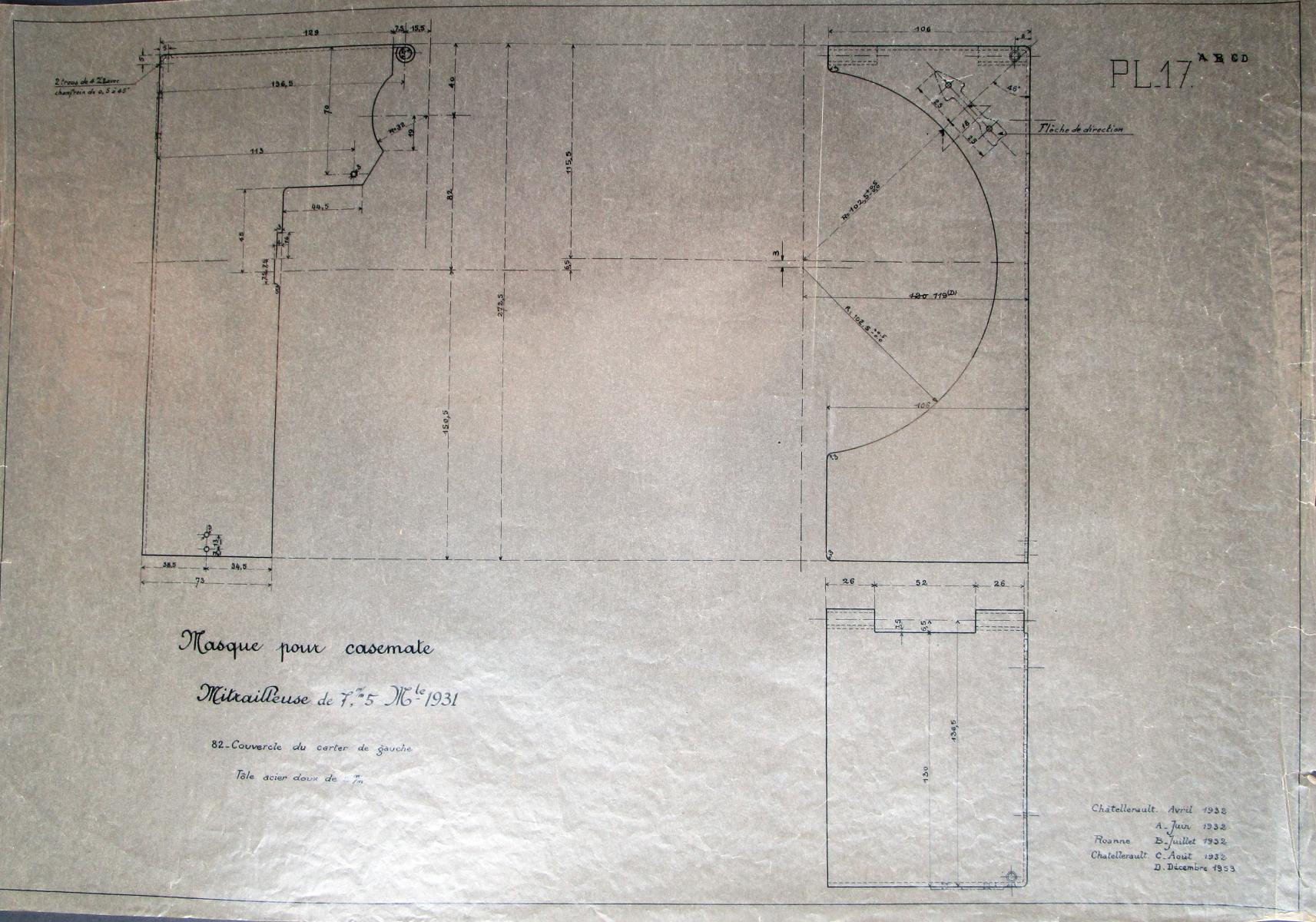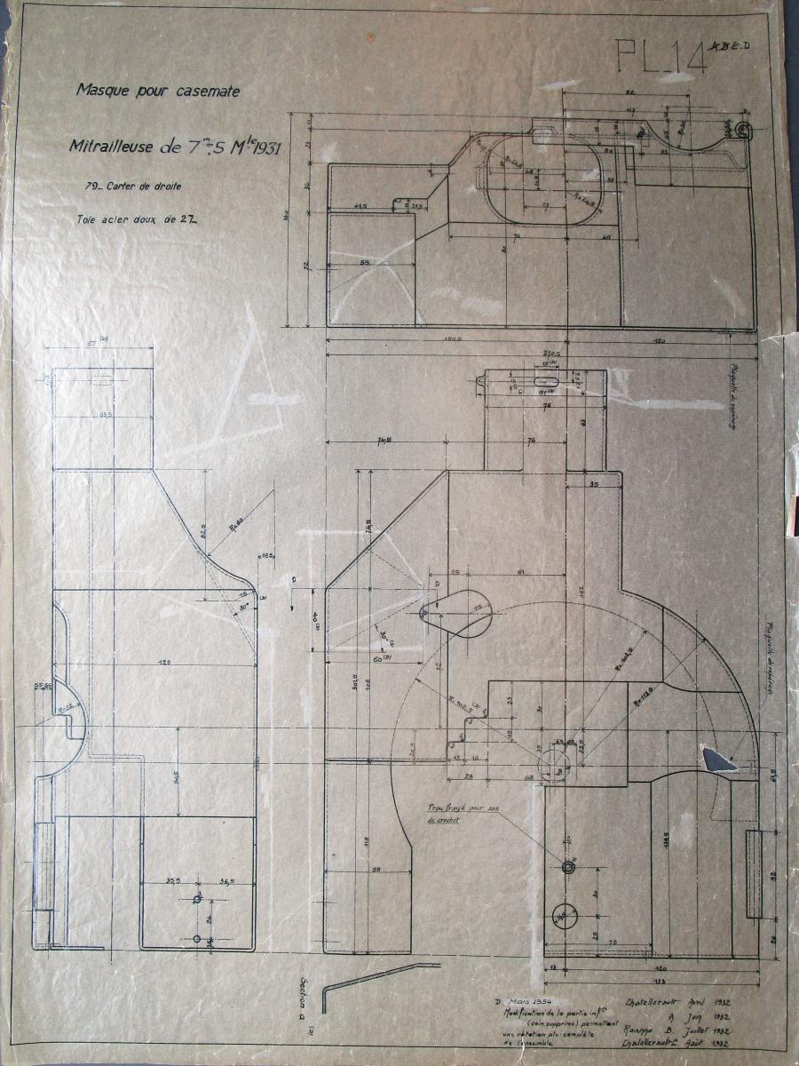 Notre association a récupéré plusieurs morceaux de jumelages Reibel en très mauvais état. Afin de restaurer ces pièces, nous envisageons de reproduire les éléments manquants. Bien que nous ayons les plans des jumelages et du cadre, ces derniers ne comportent pas les cotes nécessaires. Nous vous prions donc de bien vouloir nous fournir une copie des plans de toutes les pièces liées aux jumelages de Reibel, permettant ainsi la reproduction des éléments manquants pour rééquiper les jumelages de Kanfen. Cette initiative s'inscrit dans le cadre des visites de la casemate de Kanfen. Par ailleurs, nous sommes également à la recherche de documentation sur le canon AC 37 destiné aux casemates d'infanterie.