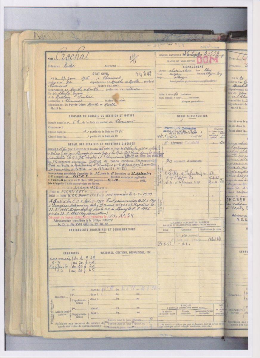 ... d'abord 1000 merci pour votre réponse si rapide et si complète!!! C'est avec une grande joie que j'en apprend toujours un peu plus sur le parcours du soldat CROCHAT !!! Votre éclairage sur les différents service , section donc métiers est très enrichissante et importante pour moi !