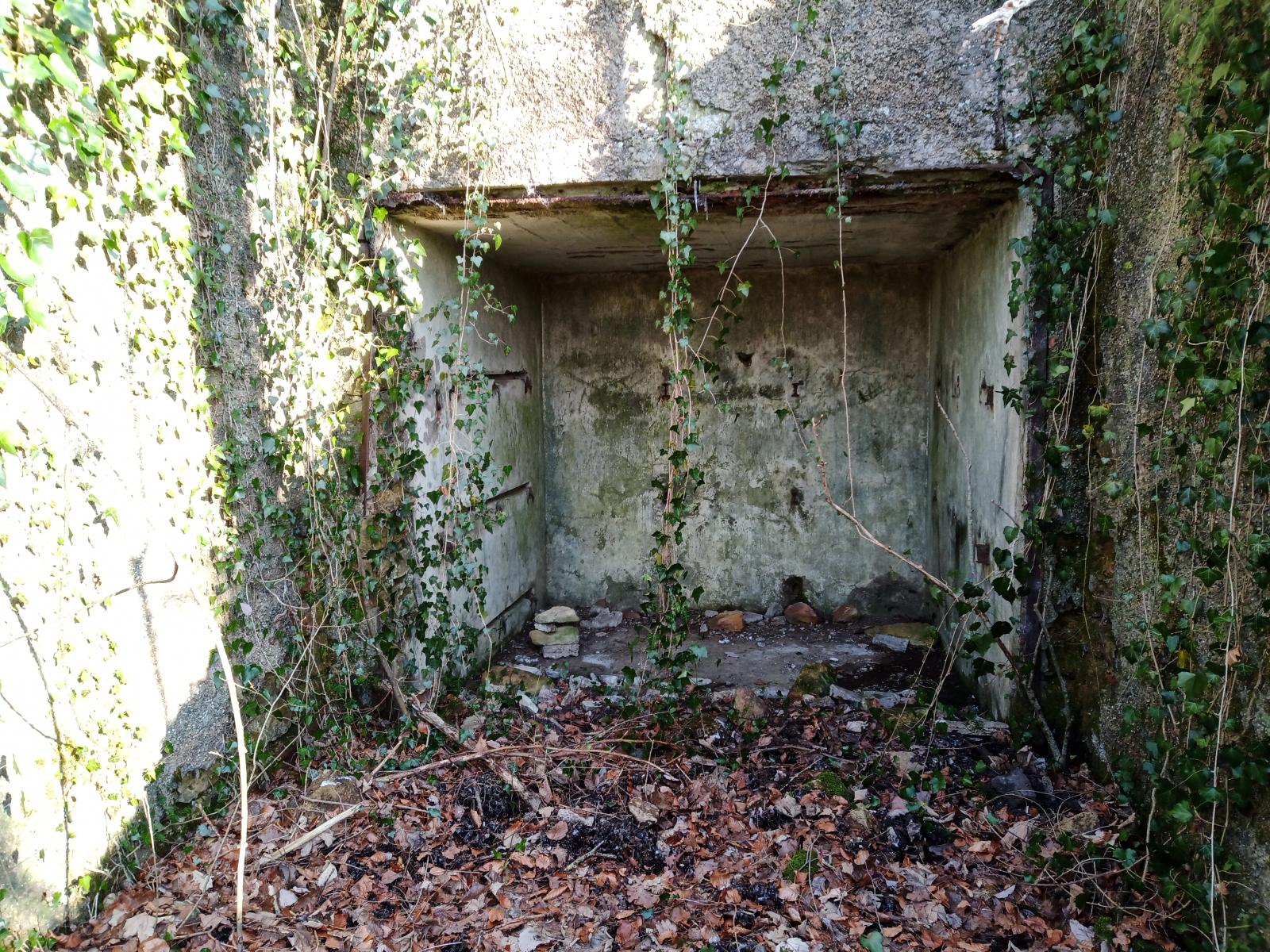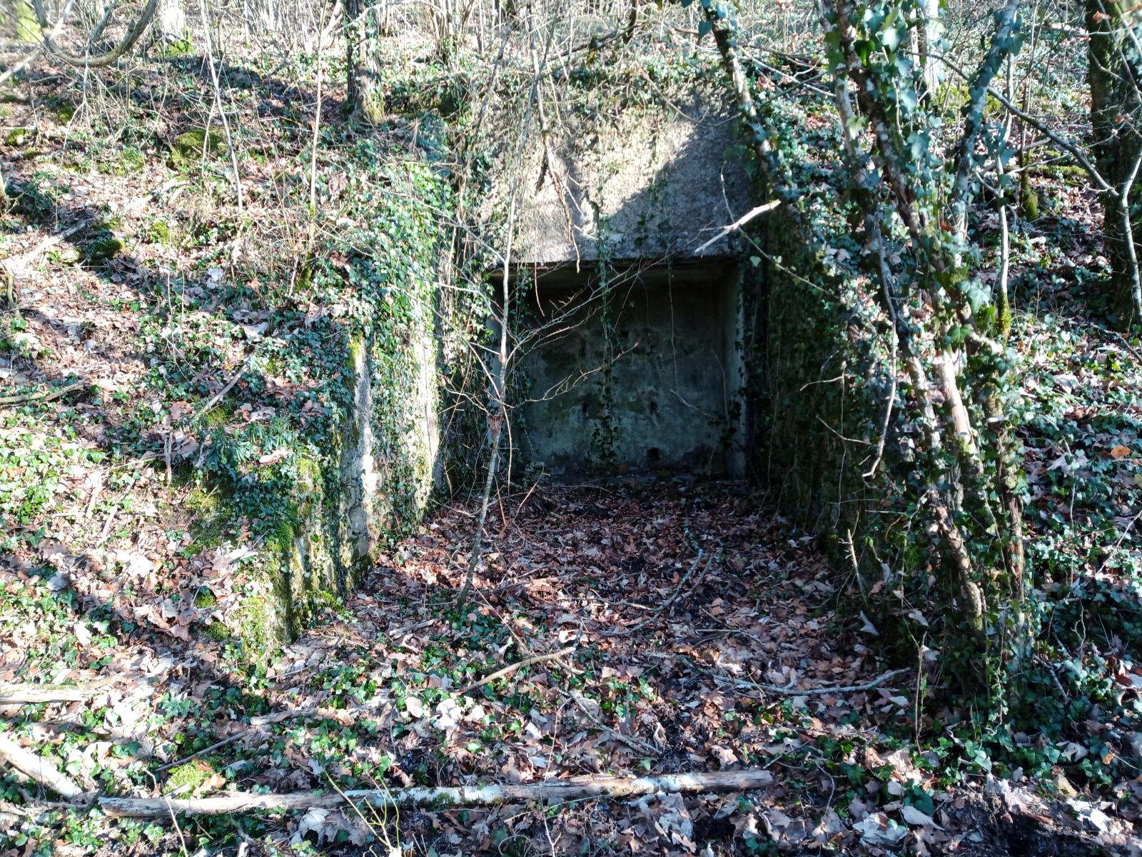 Lorsque l'on suit l'ancienne route d'accès camion, après avoir dépassé le casernement (ce qu'il en reste), 2 constructions en béton dans le talus. La première intacte. La 2e explosée et grandement comblée.