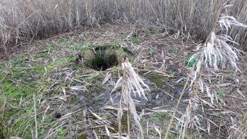Le puits est quasi comblé et aucun début d'échelle visible.