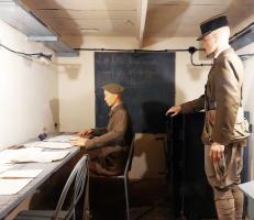 Mathieu a légendé la photo n°514 "Poste de police". Mais il me semble que ce bureau jouxte le guichet du vaguemestre. Bon, je suis passé à coté du poste de police du coup je ne le situe pas trop bien. Mais l'inscription à la craie sur le tableau, relatif au retrait des permissions, me fait pencher pour le bureau du vaguemestre (première photo jointe).