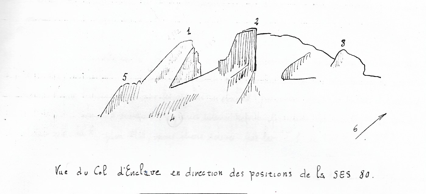 - des copies partielles d'un document soigneusement rédigé au calme par Bulle en 1941, pendant son temps un peu plus libre lors de son affectation transitoire à Grenoble. Croquis ou il explique lui-même son action au col d' Enclave, et une photo de ces positions, prise pendant une montée au Col et donc en passant au pied des lieux mêmes dessinés par Bulle. Ce document est signé "J. BULLE" sans aucune autre mention.